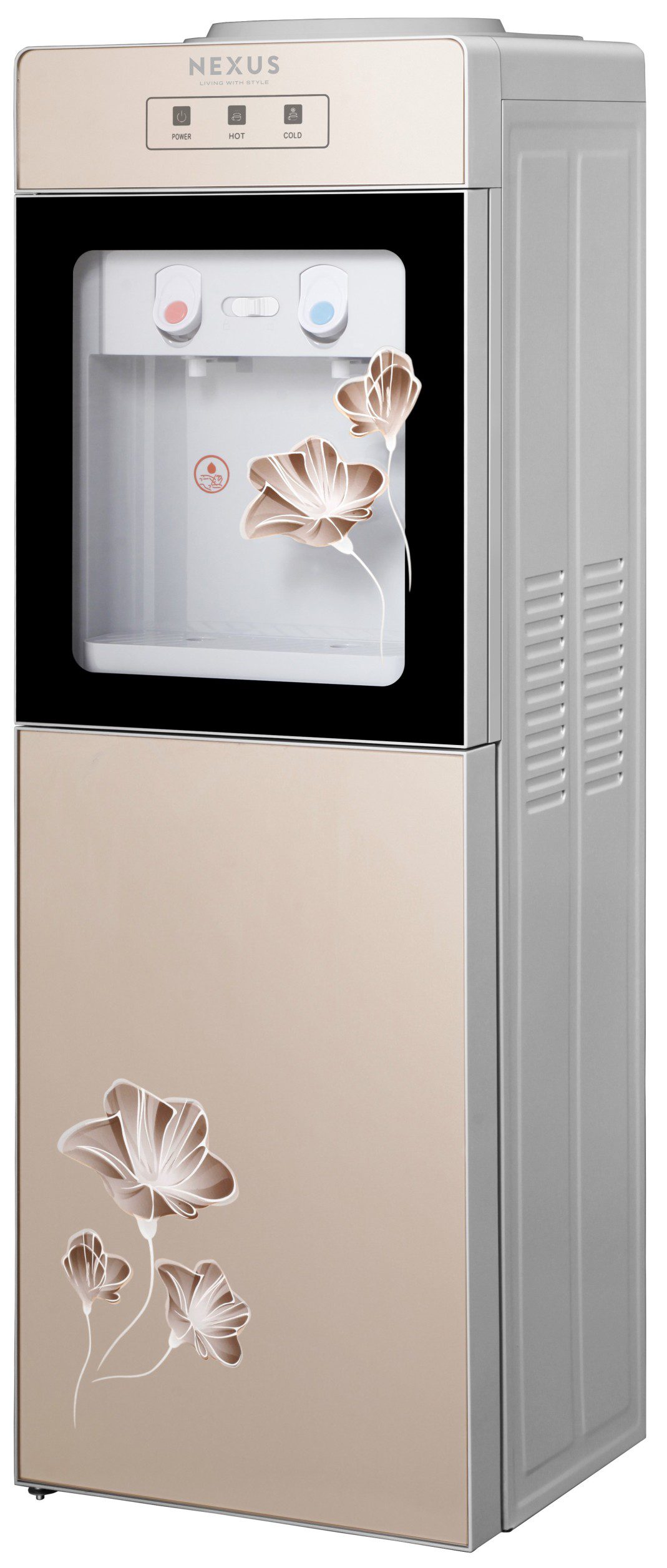 Colour – Gold with Flower 2 Taps Hot and Cold Water Dispensers Low Noise Transparent Door Strong Compressor Anti-Rust Water Tanks Automatic Temperature Control